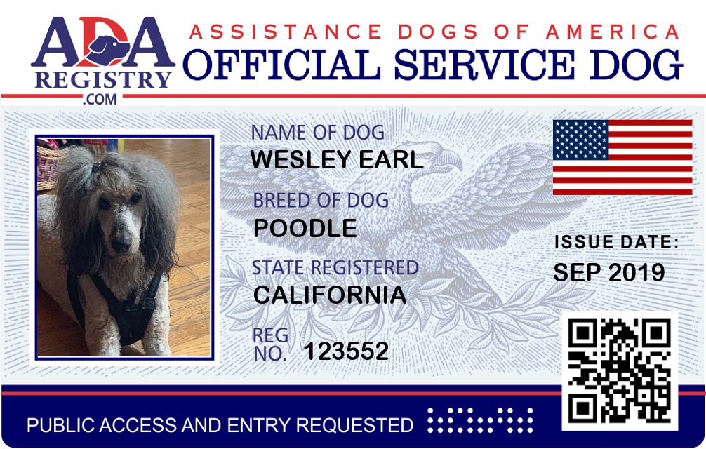 Service Dog Registration for Wesley Earl