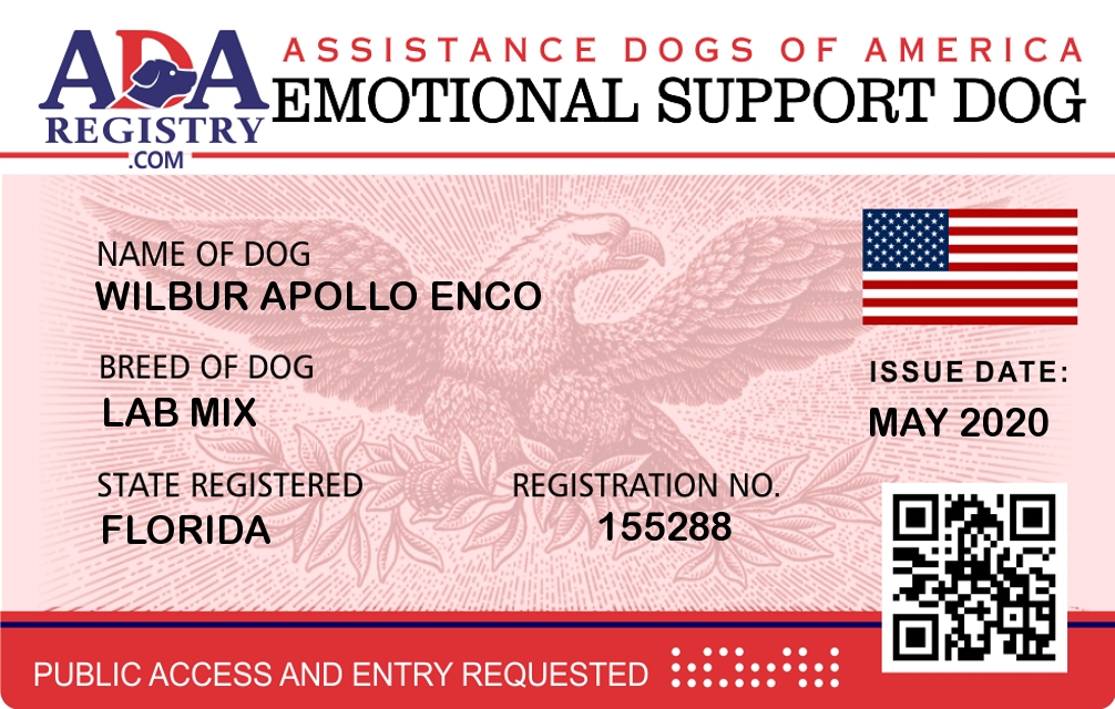 Emotional Support Dog Registration for Wilbur Apollo Enco