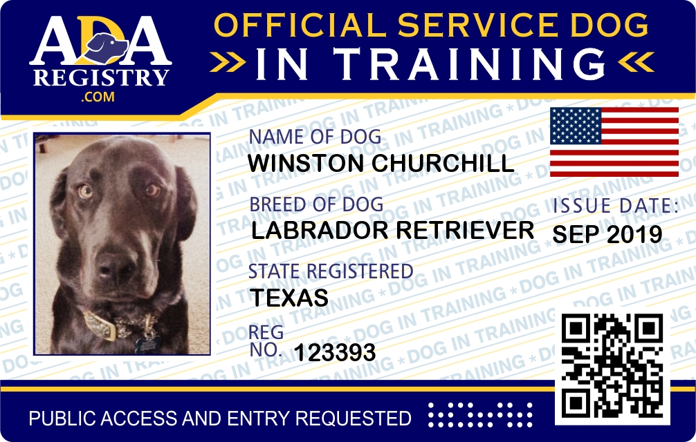 Service Dog Registration for Winston Churchill