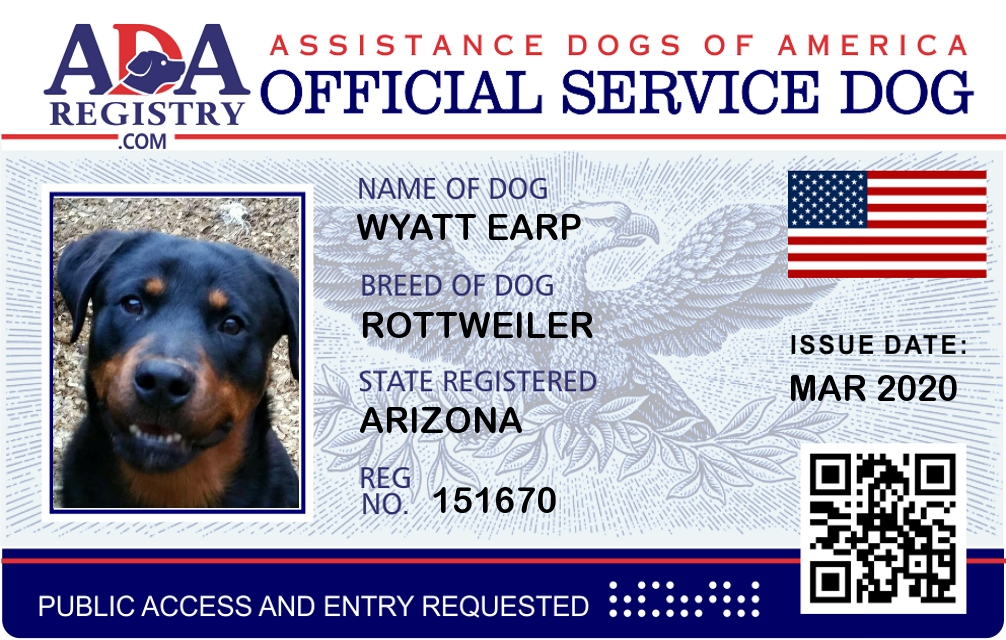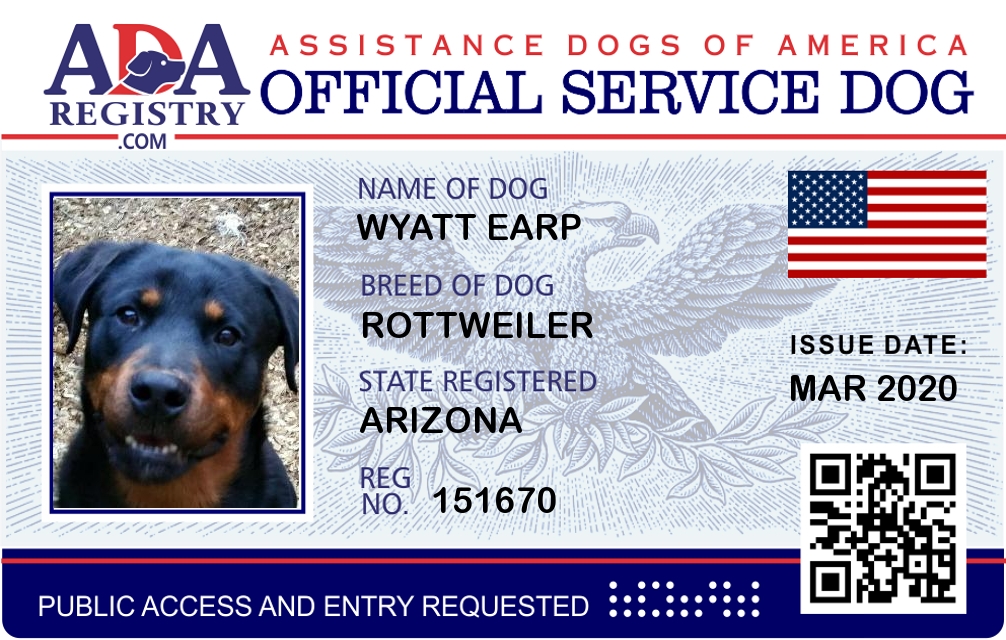 Service Dog Registration for Wyatt Earp