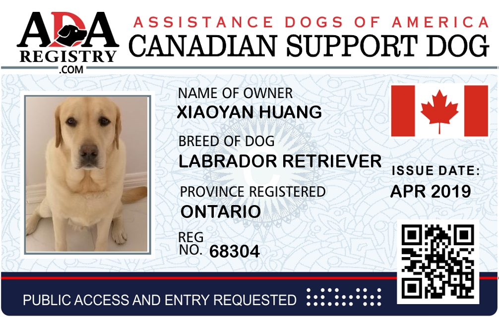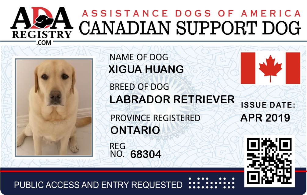 Emotional Support Dog Registration for XIGUA HUANG