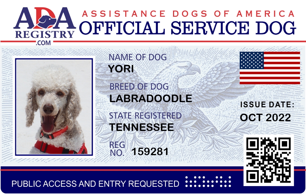 Yori is a professionally trained medical alert for TBI and ptsd service dog. She is trained to work off leash as part of her assistance in alerting. She has received her CGC, CGCA, and CGCU titles.
