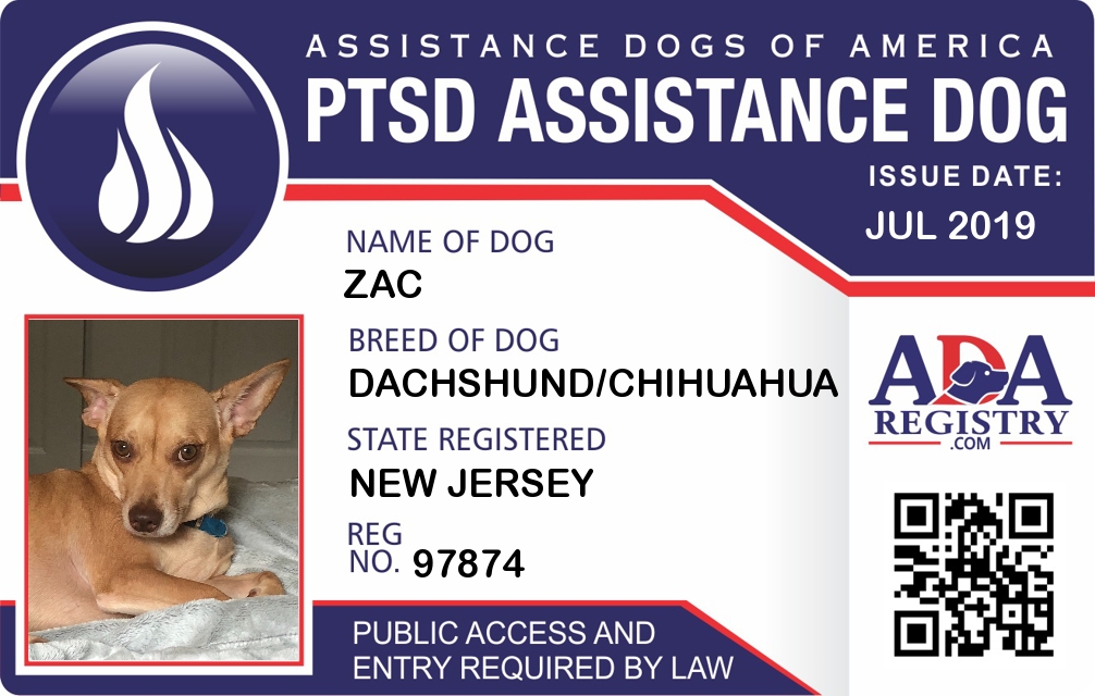 PTSD Assistance Dog Registration for ZAC