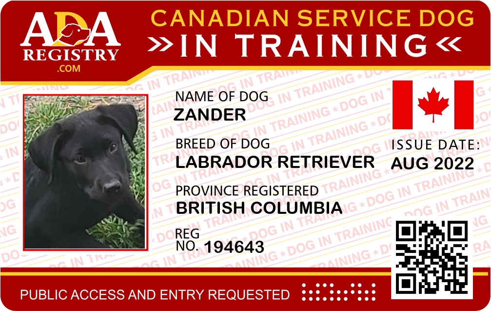 Service Dog In Training Registration for Zander