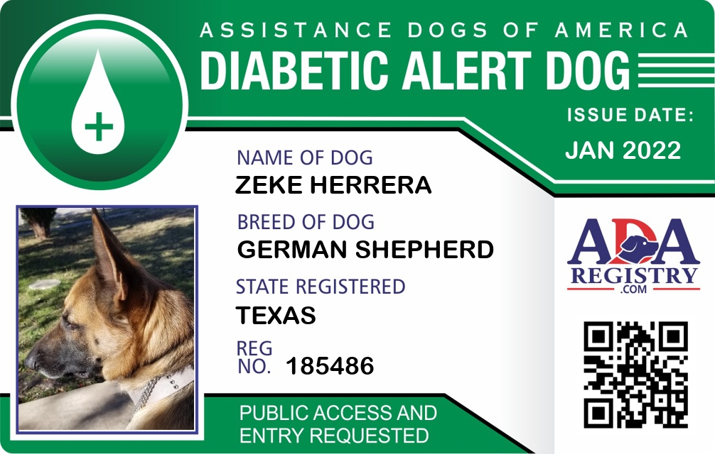 Diabetic Alert Dog Registration for ZEKE HERRERA