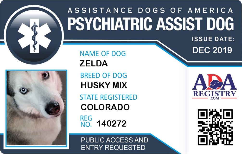 Psychiatric Service Dog Registration for Zelda