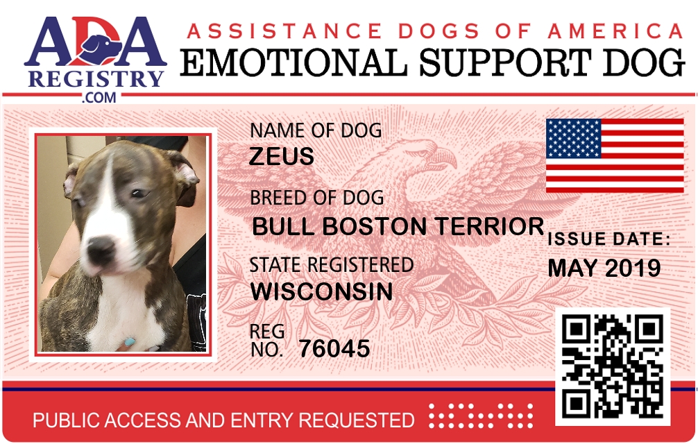 Emotional Support Dog Registration for Zeus