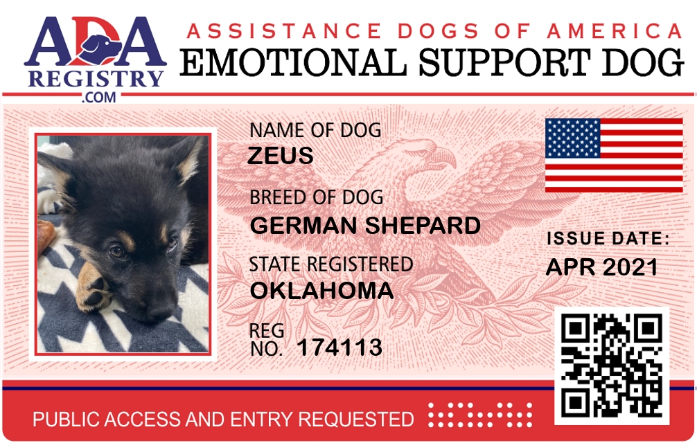Emotional Support Dog Registration for Zeus