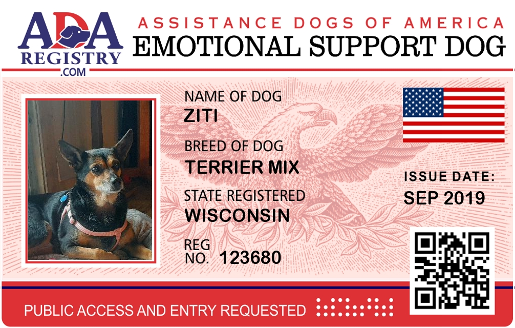Emotional Support Dog Registration for Ziti