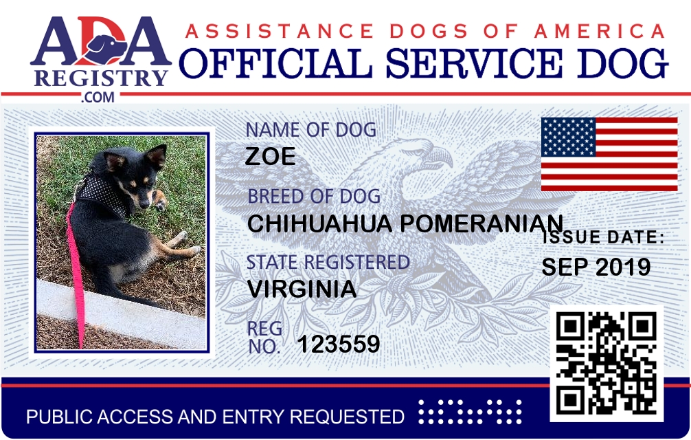 Service Dog Registration for Zoe