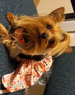 Member Since Jul 2022 - When Zoe wants to be picked up she will crawl toward you and lay still. She will shiver like she is cold when she needs to go potty. She is potty trained to white potty pads will always pee on but not always poo on. Will not bark when in harness except to get my attention or Attention for me.