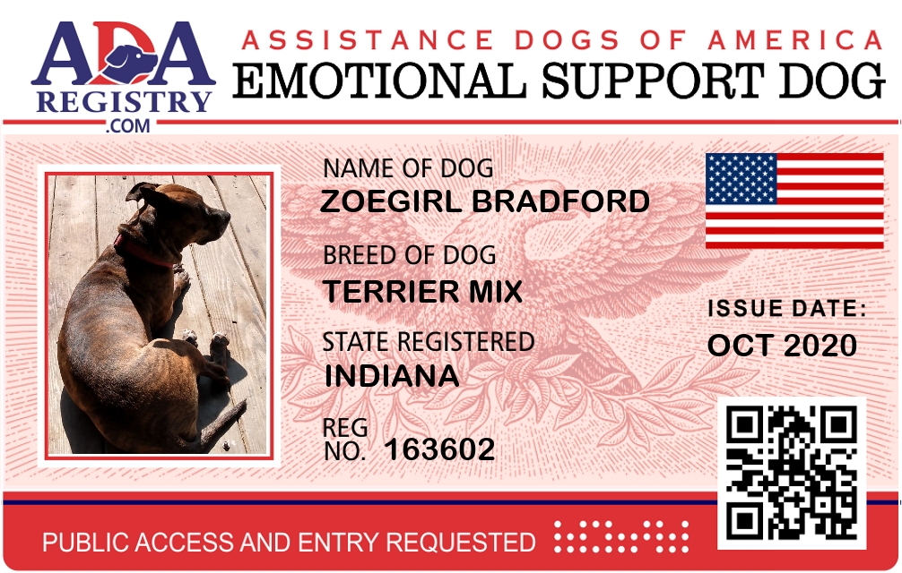 Emotional Support Dog Registration for ZoeGirl Bradford