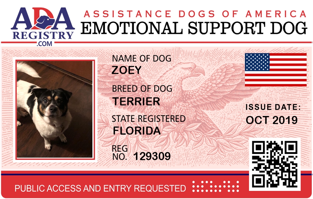 Emotional Support Dog Registration for Zoey
