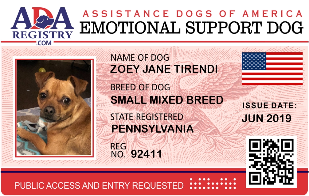 Emotional Support Dog Registration for Zoey Jane Tirendi