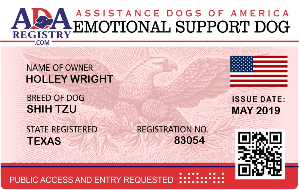 Emotional Support Dog Registration for Zoey Wright