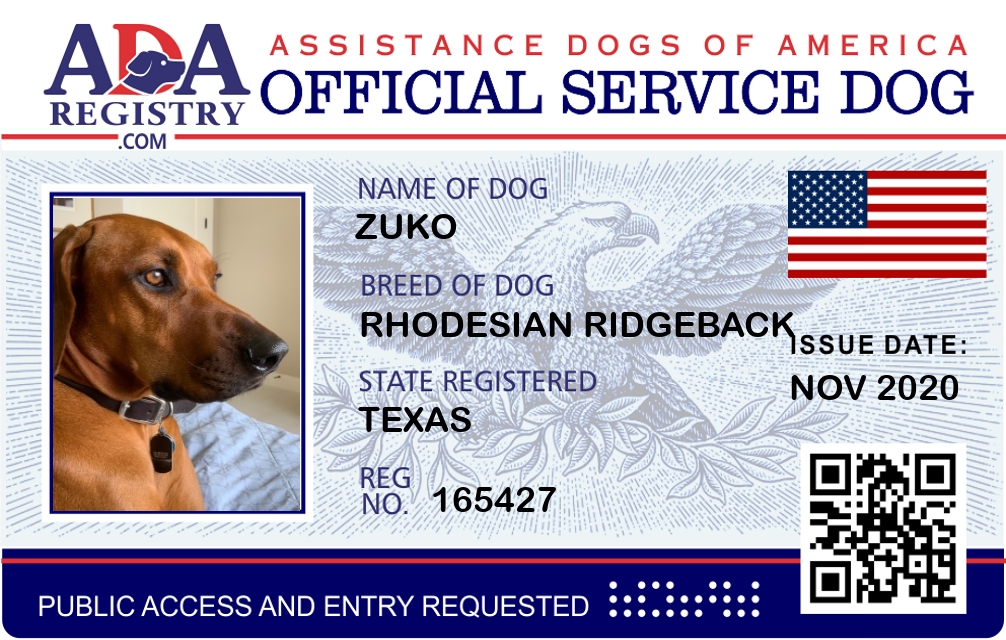 Service Dog Registration for Zuko