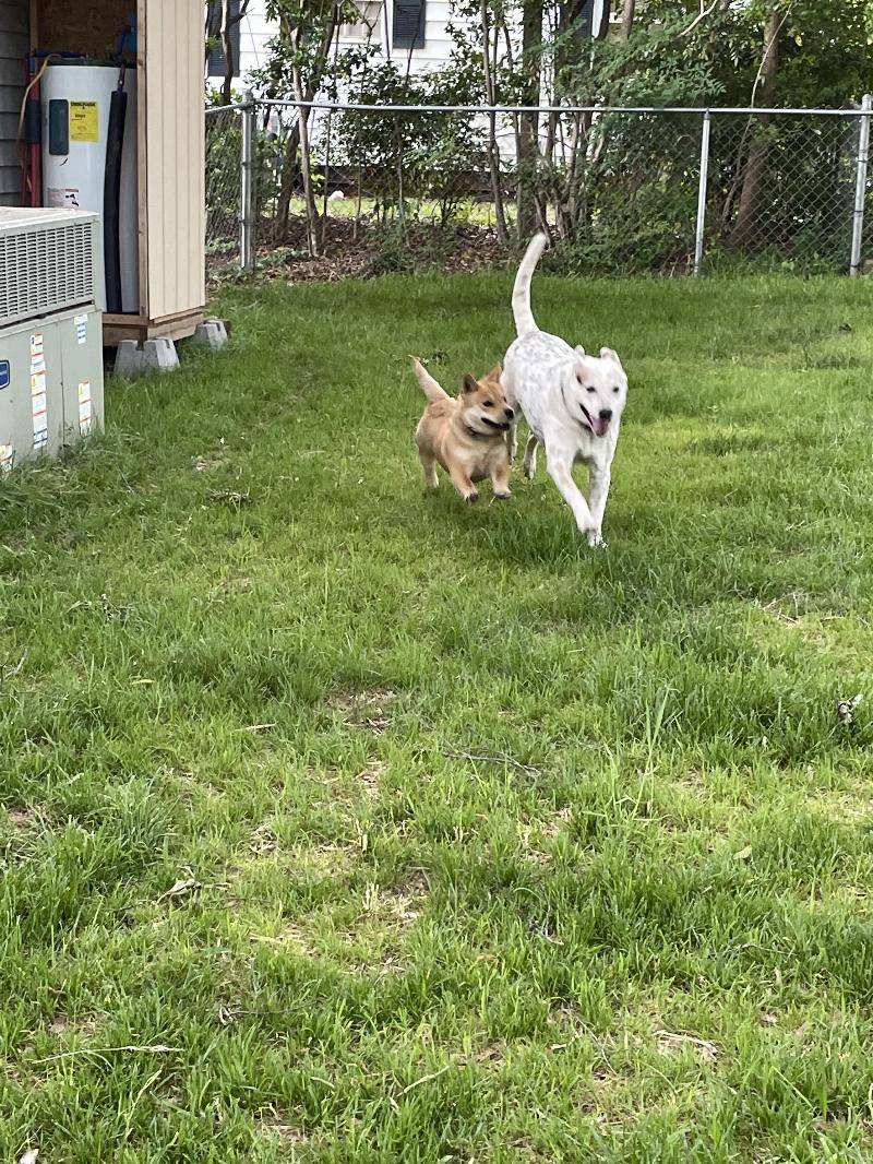 Duncan was running around and playing with a neighbors dog that I was looking after while they were on vacation. He is such a sweet dog.