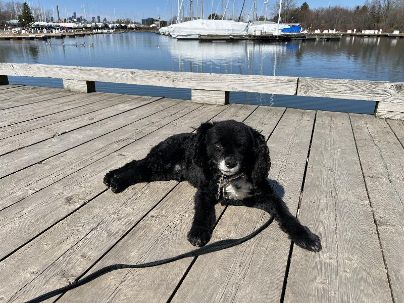 Mac walks at Ashbridges Bay Park, which hugs the shoreline of Lake Ontario (Toronto, Canada). He loves swimming, is ball crazy and has many favourite aunties.