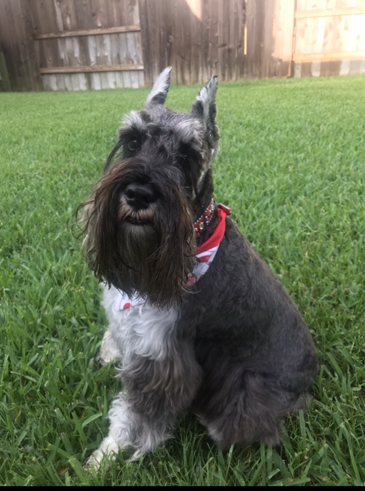 This is a photo of Stetson bathed and brushed and ready to make a 2-hour visit at the senior facility he visits every week. He typically visits for 2 to 2 1/2 hours and visits Independent, Assisted and Memory Care Villages.
