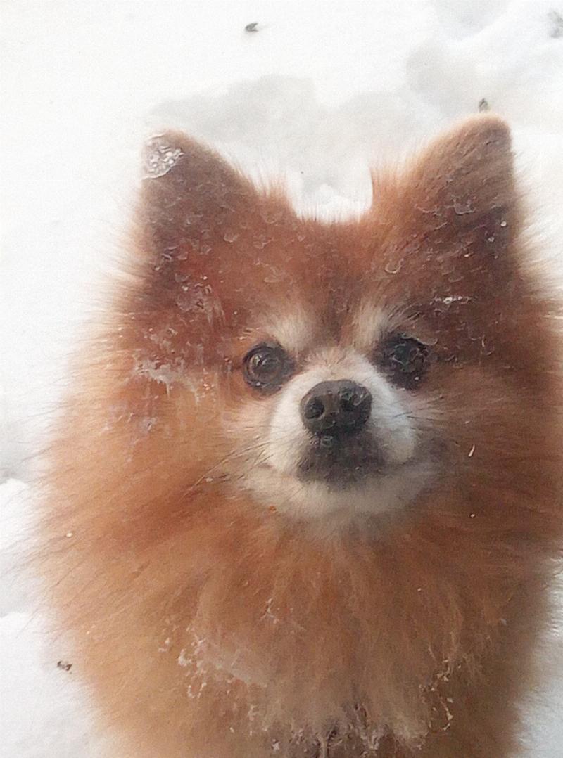 Gabriel 2/15/21 is standing at the door looking inside. It is snowing in Austin Texas quite unusual but Gabriel went out to explore.