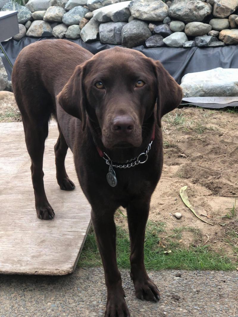 georgia is a small brown chocolate labrador retriever. She is aproximately 22 kg. She is a very kind a gentle soul who enjoys spending time with her family and enjoys meeting new people. With covid, we have not been able to take her into long term care homes as we had originally planned. We are hoping that we could do that in a few years when we are permitted to do so.