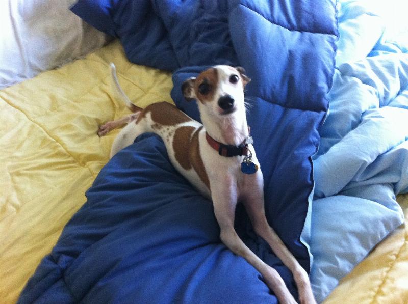 My favorite spot to be is in my Moms bed, surrounded by her blankets!
