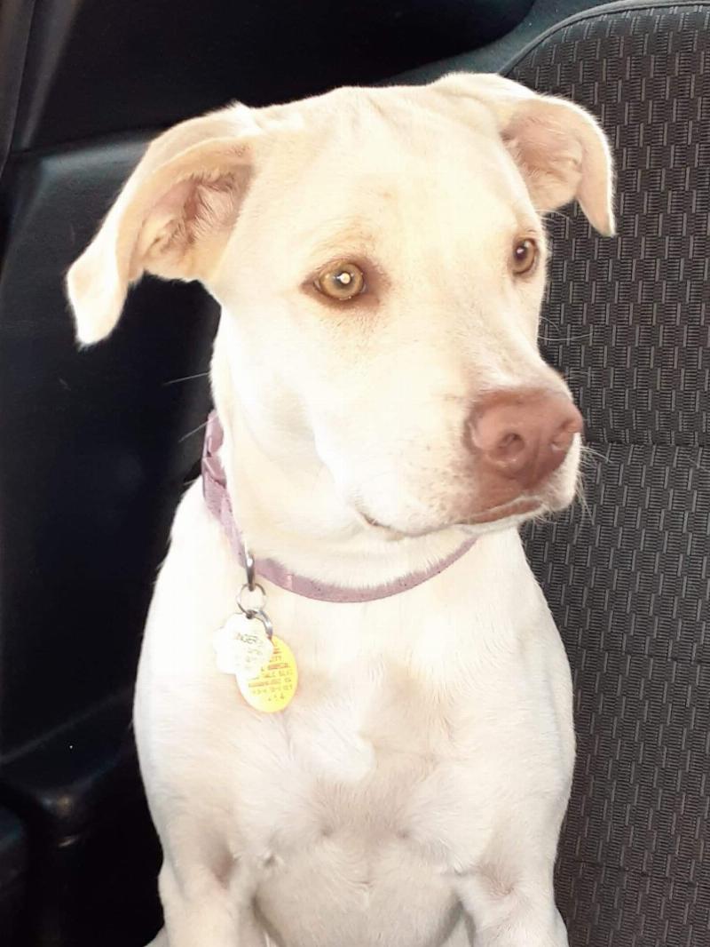 She is a quiet, sweet, committed dog for service, very intelligent, and sensitive to what occurs around her and her owner.