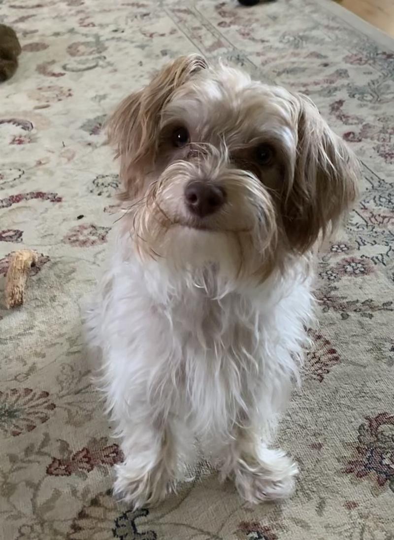 Griff is a 7.6 lbs bundle of energy. He is more Yorkie than Poo. He’s an incredible traveler, whether by air or in the car: he’s accompanied me for more than 20,000 road miles already and traveled by air with long layovers in the airport. He remains quietly in his travel kennel when I have no choice but to take him with me into restaurants impressing everyone with his good behavior.