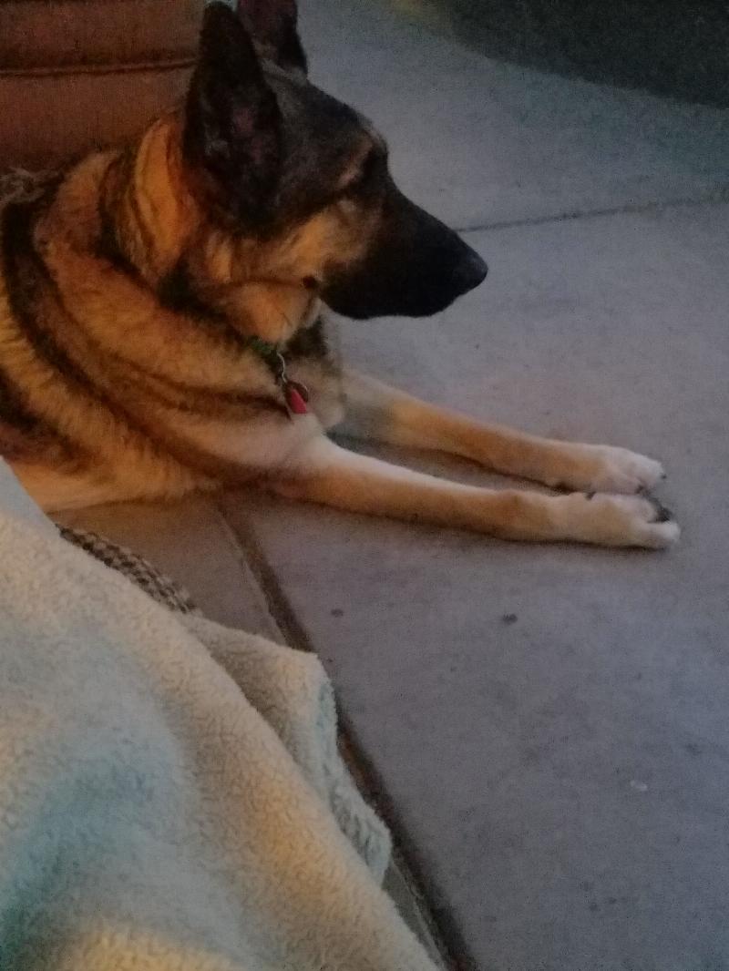 My dog likes to sit on the porch with me while I drink my coffee in the morning. He is a big helper and serves as emotional support mostly for my special needs son. But if my kids are asleep then he will come hangout with me.
