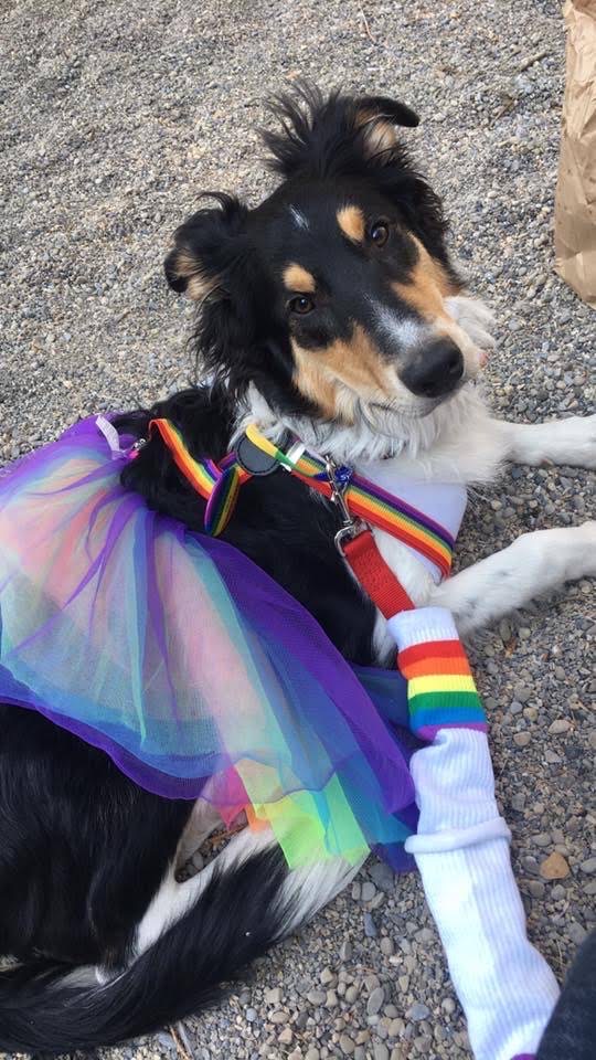 Bean loves attending pride every year to support the LGBTQ community! I think his favourite part is all the love and treats he gets!!
