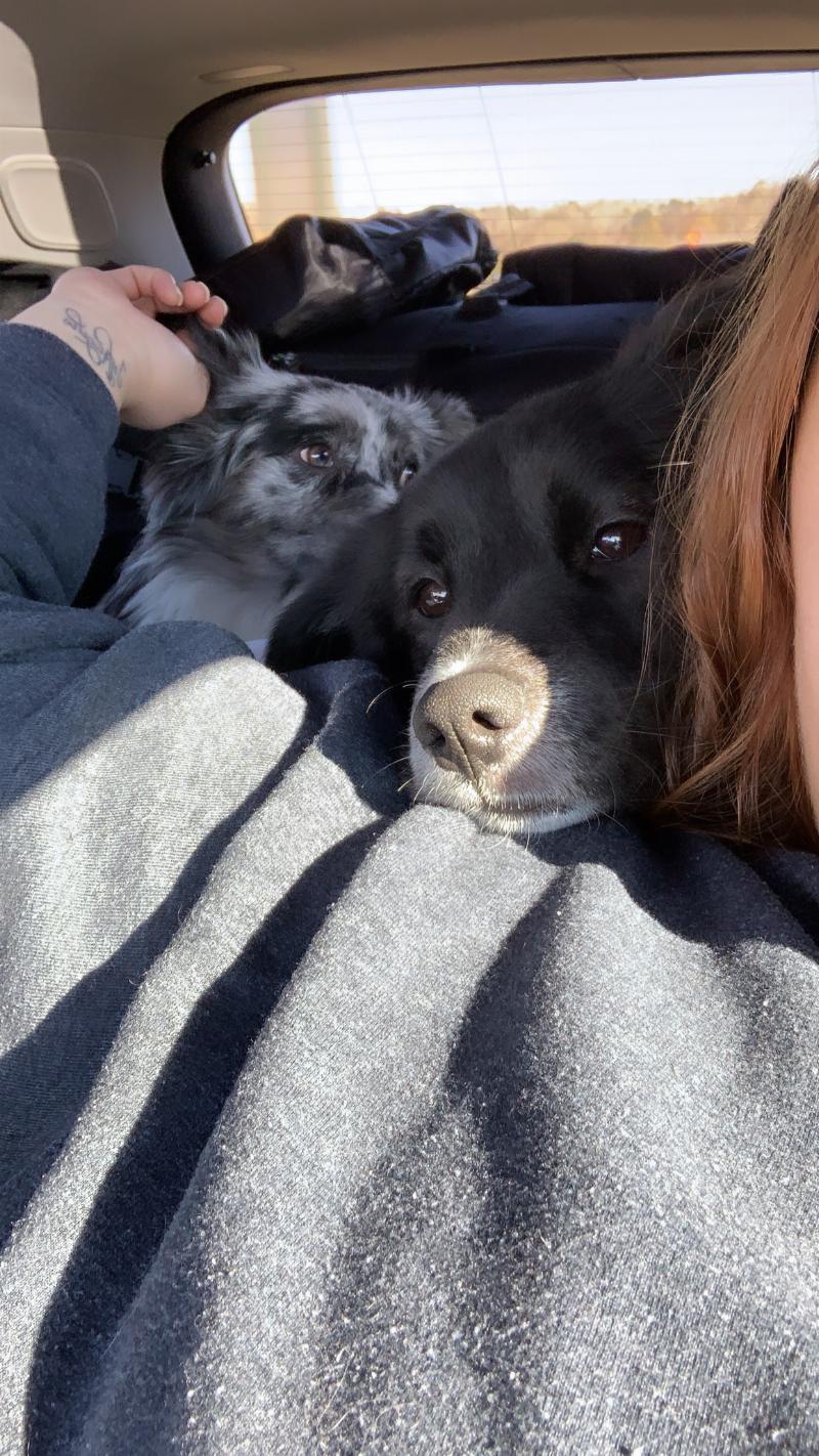 I have a big fear of long road trips. Koa never fails to know when I’m starting to trigger. She is right by my side to calm me down.