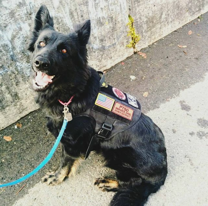 This photo was taken on March 31, 2021. We went out for a short mile long walk, and I put her vest on to continue to work on her manners. She kniws what’s expected of her, but we continue to work on her training to keep it fresh in her mind. Here she’s wearing her Service Dog Vest, and you can see a few of her patches. I put the K-9 patch on in October, it reminds me of what I’m working towards in my career. I am NOT impersonating a K-9 Officer, and I’m tured of hearing it.