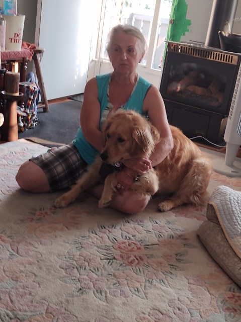 This picture was taken in our front room. They are really attached and don’t do a lot alone. She is a very loving Golden Doodle and Sherry-Lynn is just crazy about her.