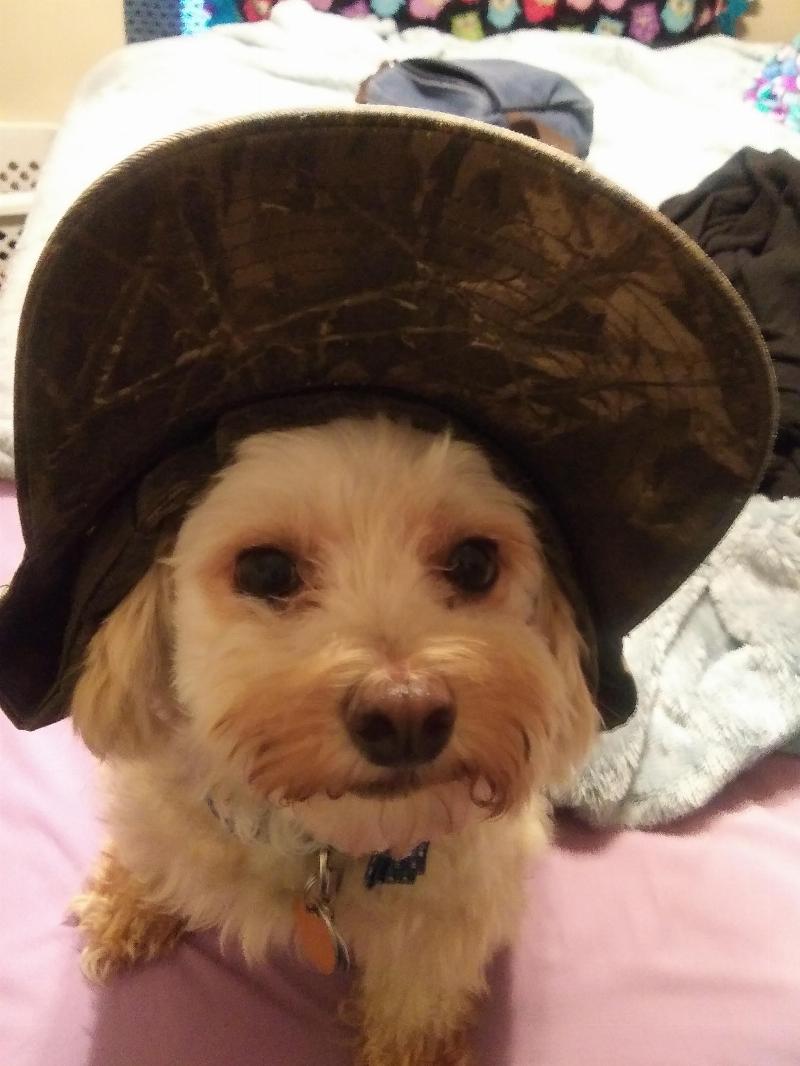 I love to wear my daddy’s hat when he doesn’t wear it! When my hair is long I look like a poodle. when my parents cut my hair I look like a chihuahua!