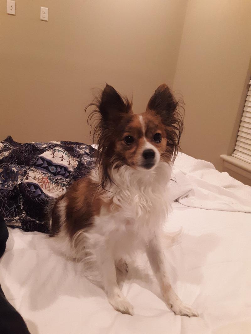 This is a profile picture of Rhea to help confirm her identification and certification as a diabetic alert dog for Lindsay Marie Harris.