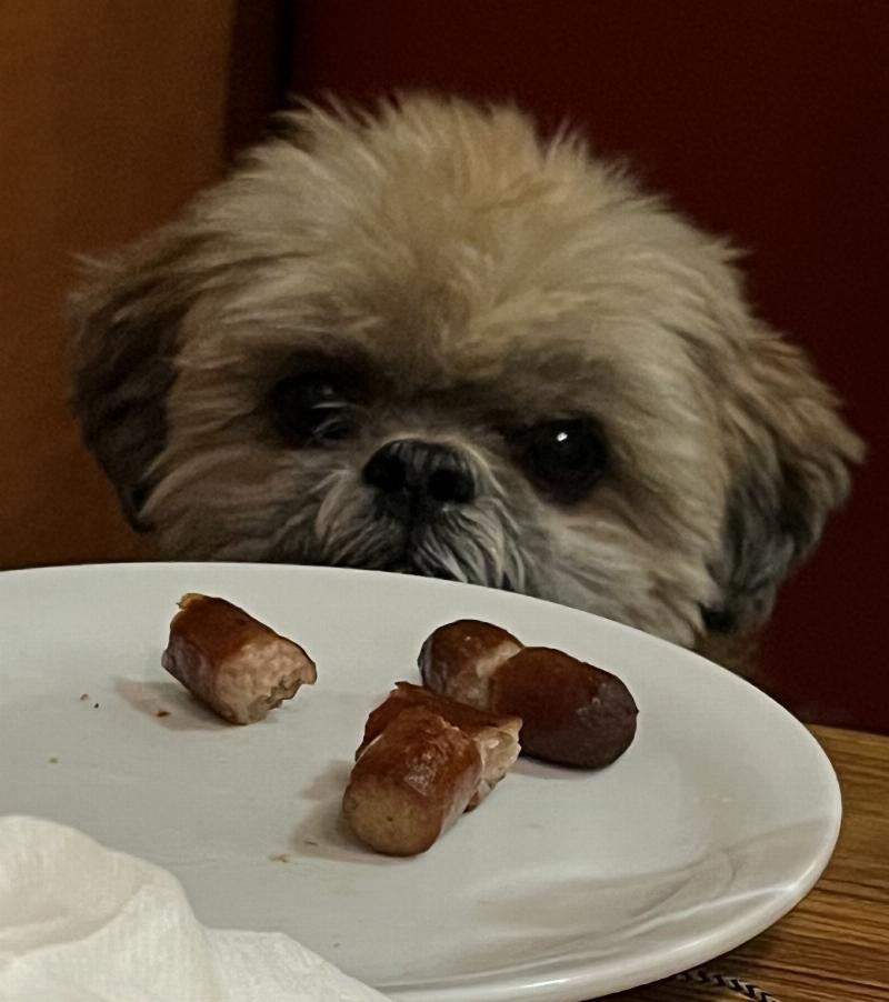 Evening snack at Denny’s and we caught him just as he sat up, he didn’t even notice the sausages yet.
