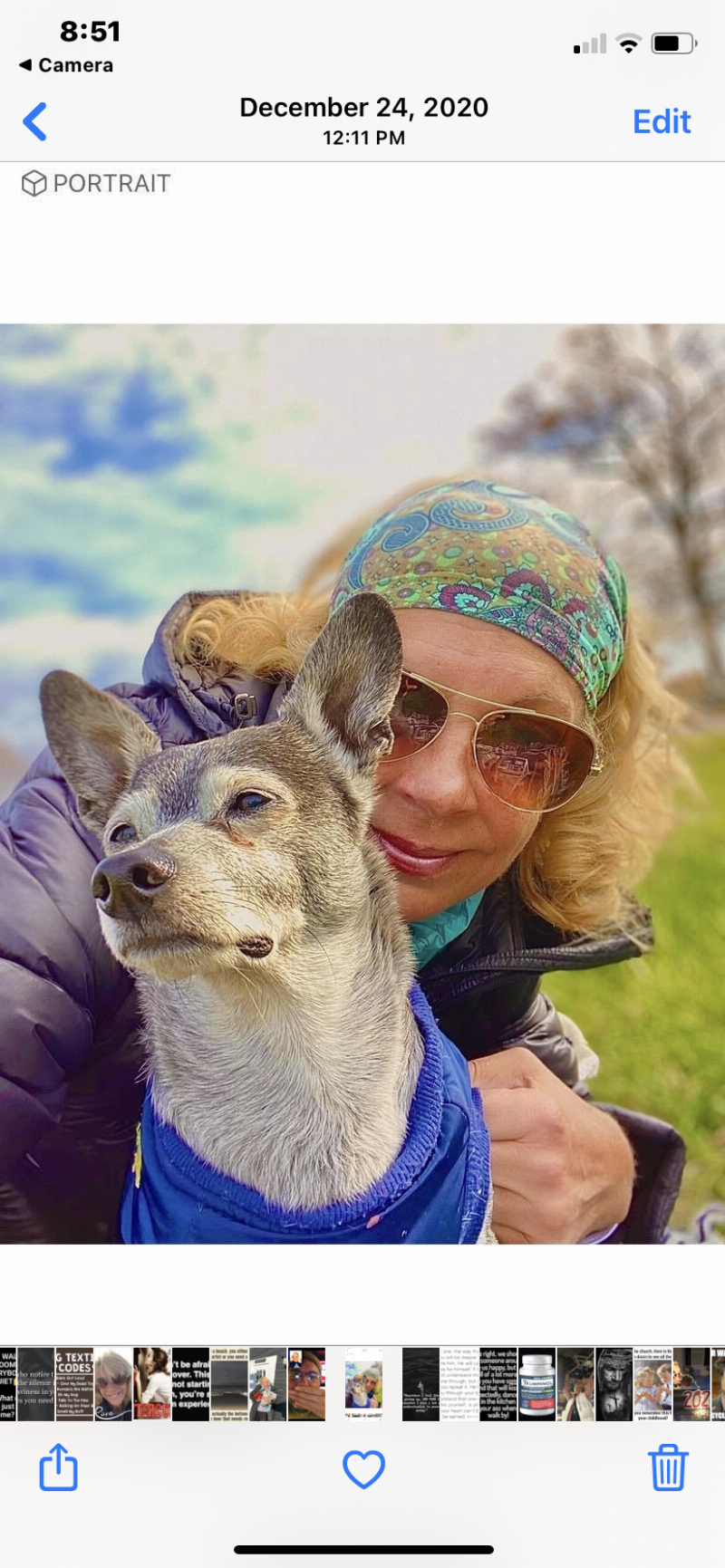 My Saving Grace, My Best a friend, My True Love and to “HERO WENDALL” for seeing me thru cancer 2x time in 1 ye and most recently … I “dropped” and Wendall managed to get a neighbor to our house even when I was “Gone”… I was “doa” and lost almost a yr of my life… reunited afterwards…and our “Love Story” literally every day a new chapter in the book of LIFE… “JUST A GIRL AND HER DOG” will be ???