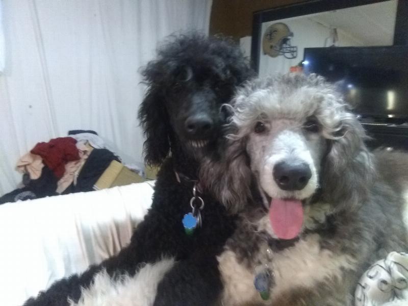 King Charles Winstom is a sliver and white standard poodle. Born December 1,2020. He is an emotional support dog. He does not leave my side, unless he is with my husband. I also have a black standard poodle who never leave my side. She is also an emotional support dog. Both dogs are singed up with the Ada.