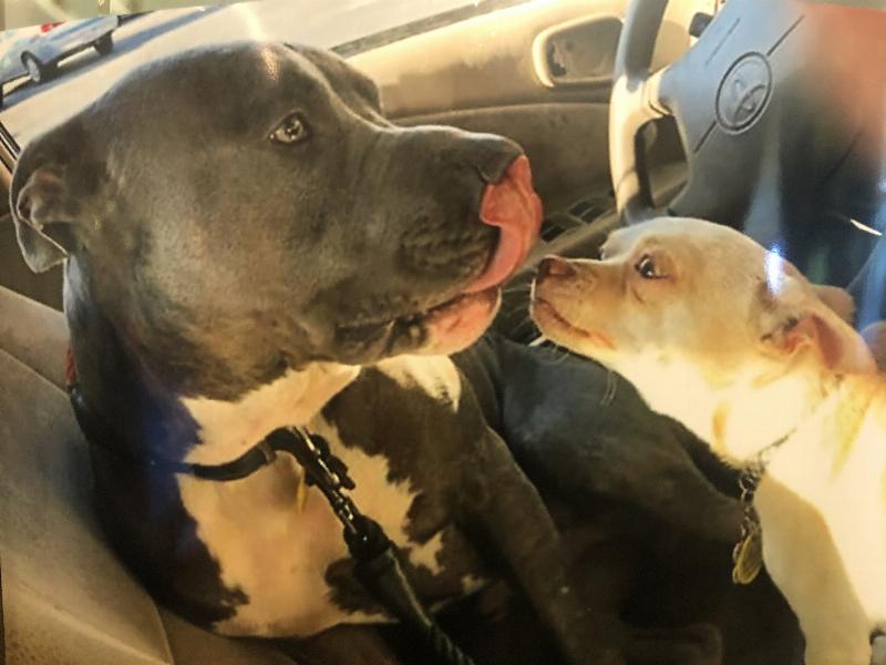 Dallas and Hercules-RIP- giving kisses in the car! All our fur babies love car rides! On this day Dally and Hercules-RIP- show their excitement by giving one another kisses!!!