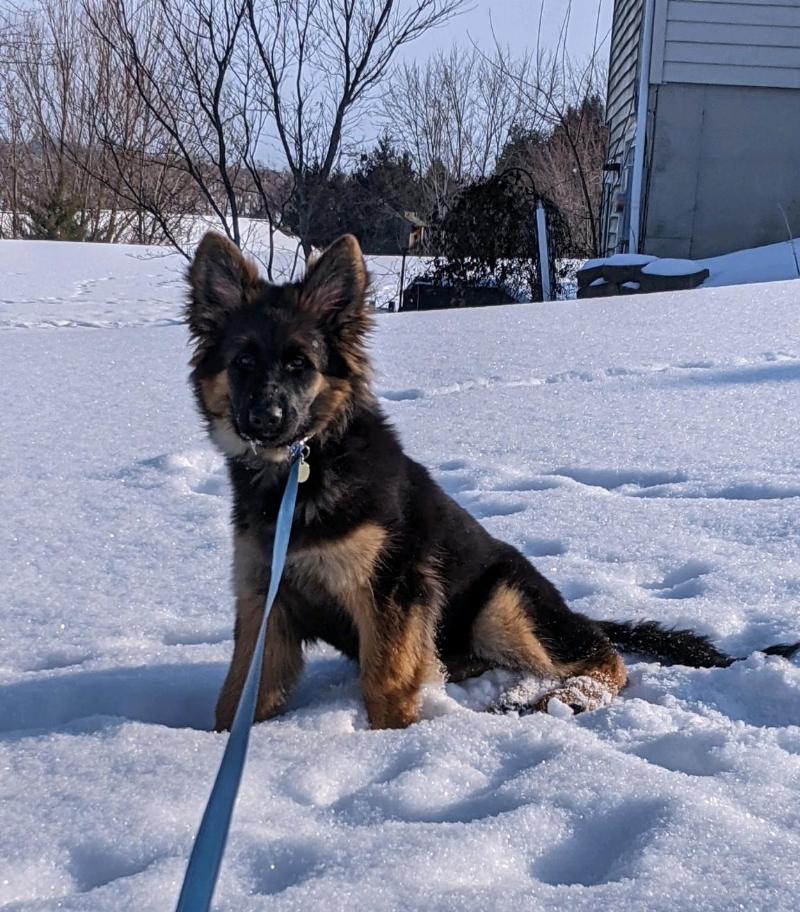 Krissy sits naturally and looks beautiful. She loves to play outside in the snow. Running is something that she loves and needs to maintain good health. I’m very happy to have her as part of our family. She is well behaved and enjoys company and attention.