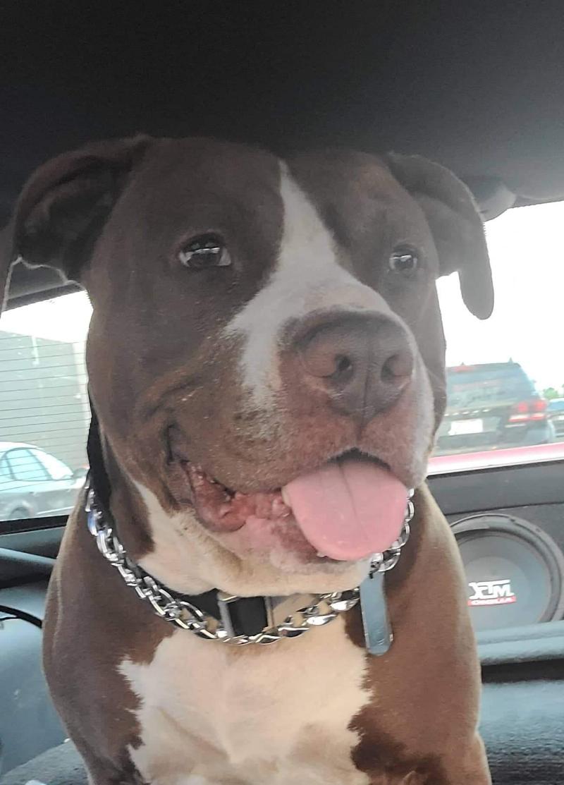 Kylo Ren is our emotional support dog. He is a brown dog with white nose, chest, and tips of his paws. My son is autistic and Kylo is a huge part of our family.