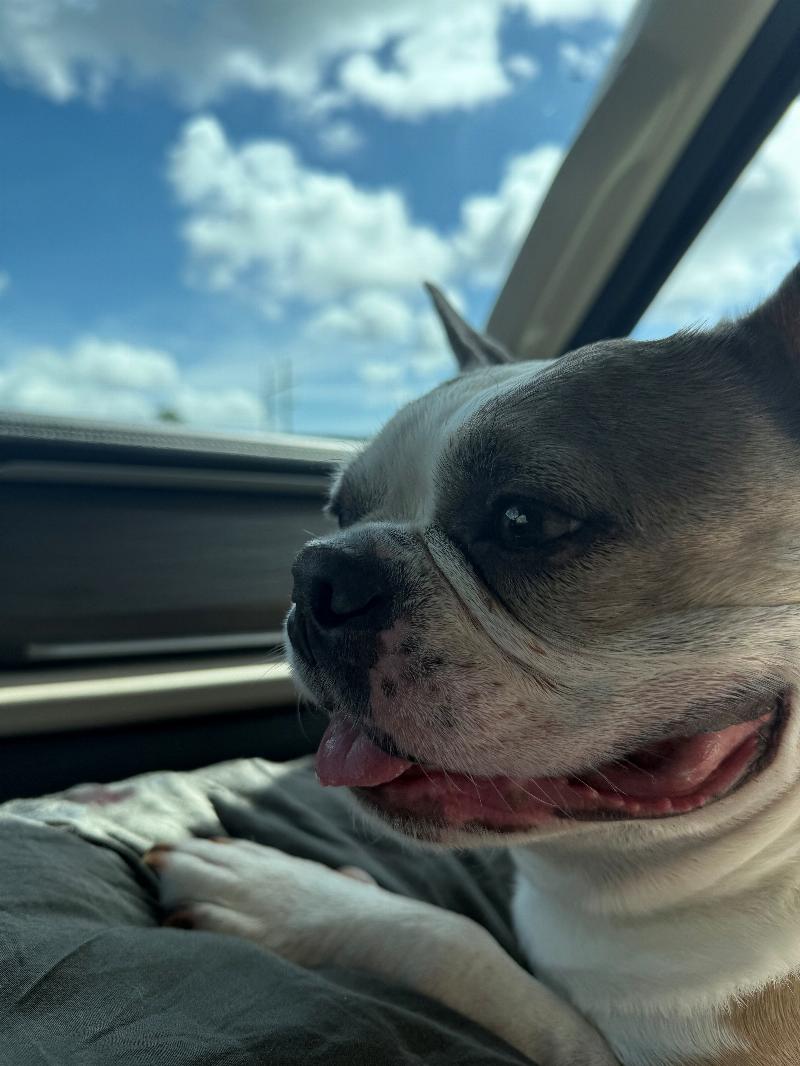 He is one in a million. He helps keep us calm and cope with anxiety. He is very playful, interested in everything, and lovessss food. He doesn’t enjoy walks but loves fetch!