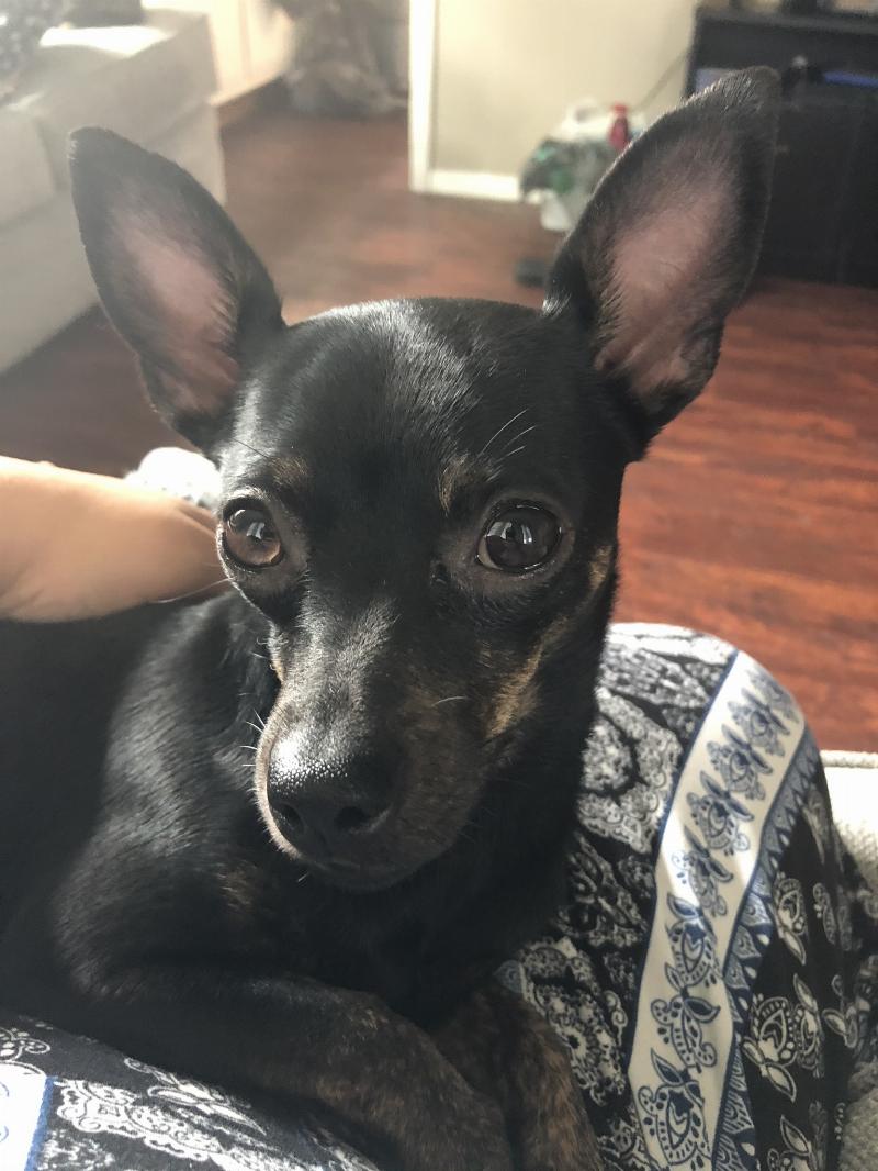 Lola Ocasio Del Valle born on October 1 2018 in Ohio. In this picture she was sitting on her mommy’s lap getting pets and she was and is a happy pup.