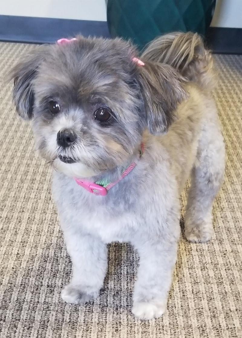 Lola goes to work every day and helps guard the door from strangers and delivery persons. She makes the work day more enjoyable.