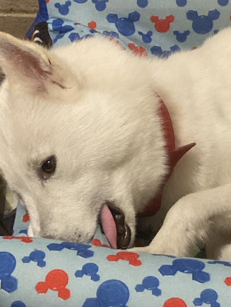 He decided to start chewing on his bed and when he did, I looked up and asked him what he was doing. He stopped dead in his tracks and gave me crazy side eye ???
