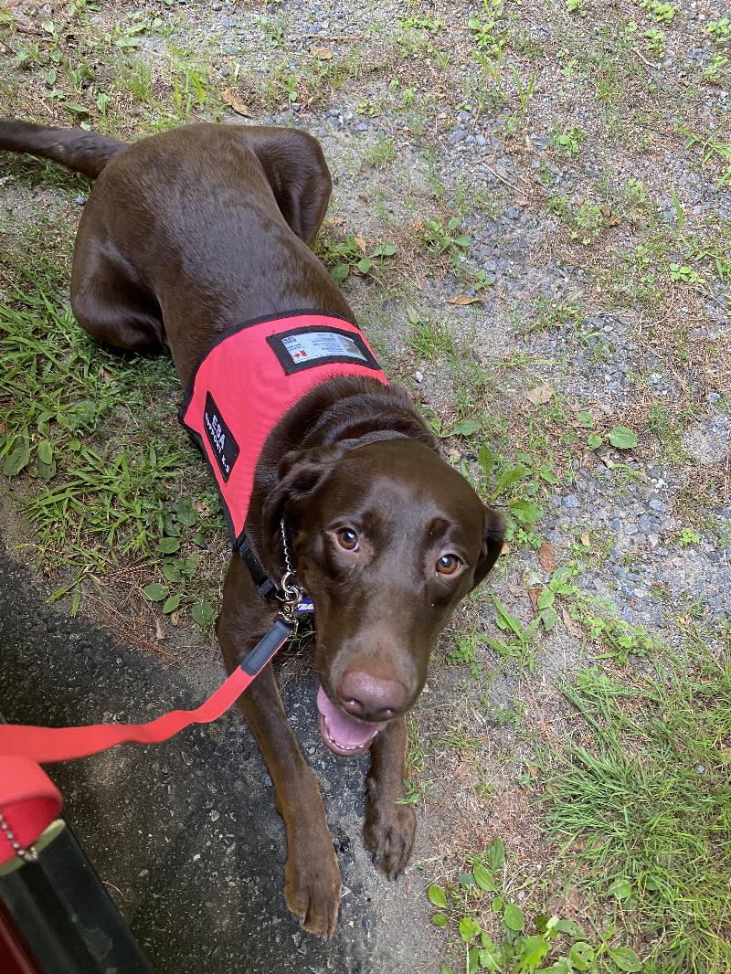 Marley at the docks by Bigwin Island where mommy and daddy work, when wearing her vest she knows she’s working and loves every minute of it❤️