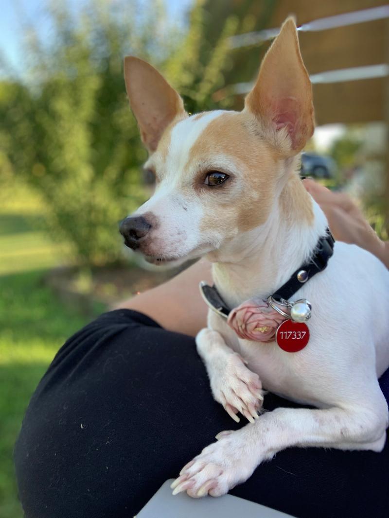 Photo of Menorah outside at our cabin in Pequot Lakes, MN. She loves being outdoors and loves sunny days. She loves to snuggle and comfort.