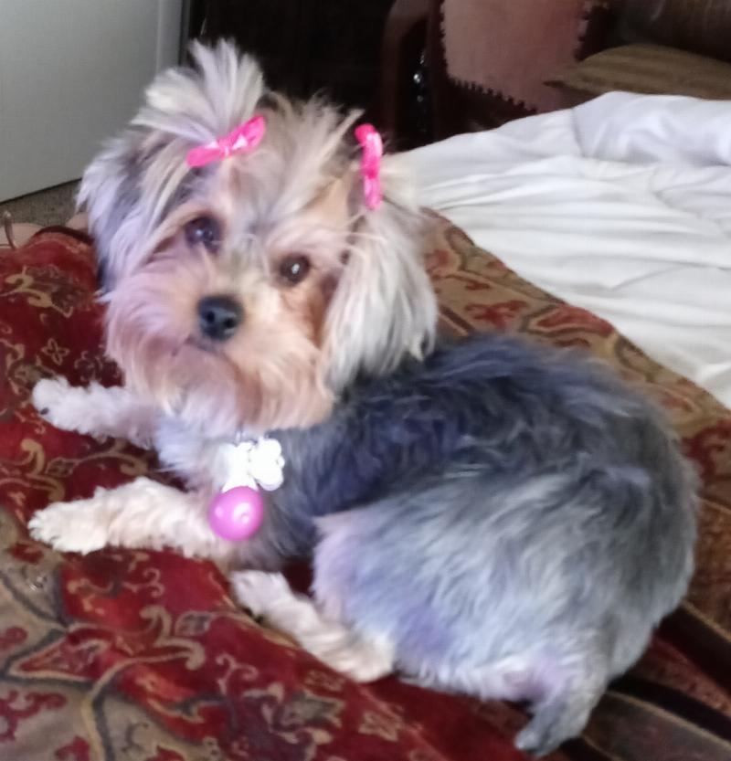 Minka is very spoiled but she is sincerely attached to Kyle. She will always stay close to him on walks without a leash & comes whenever he calls her name. Minka sleeps w/Kyle in his bed although she has her own. She loves sitting in her pillow in his basket on Kyle’s adult tricycle going fir rides.