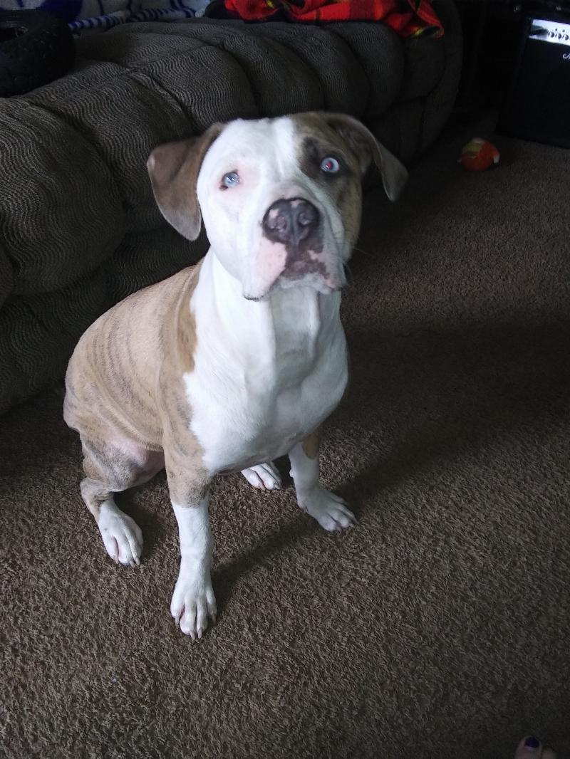 White and Brown pit lovely girl she is not mean she has markings like a lion