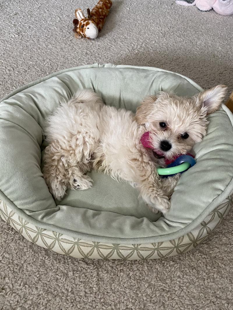 Training him to stay in his bed whilst we’re at home with mom and dad. He’s been a little challenge at first but he’s learning to become a civilized and great dog of the great country of Texas